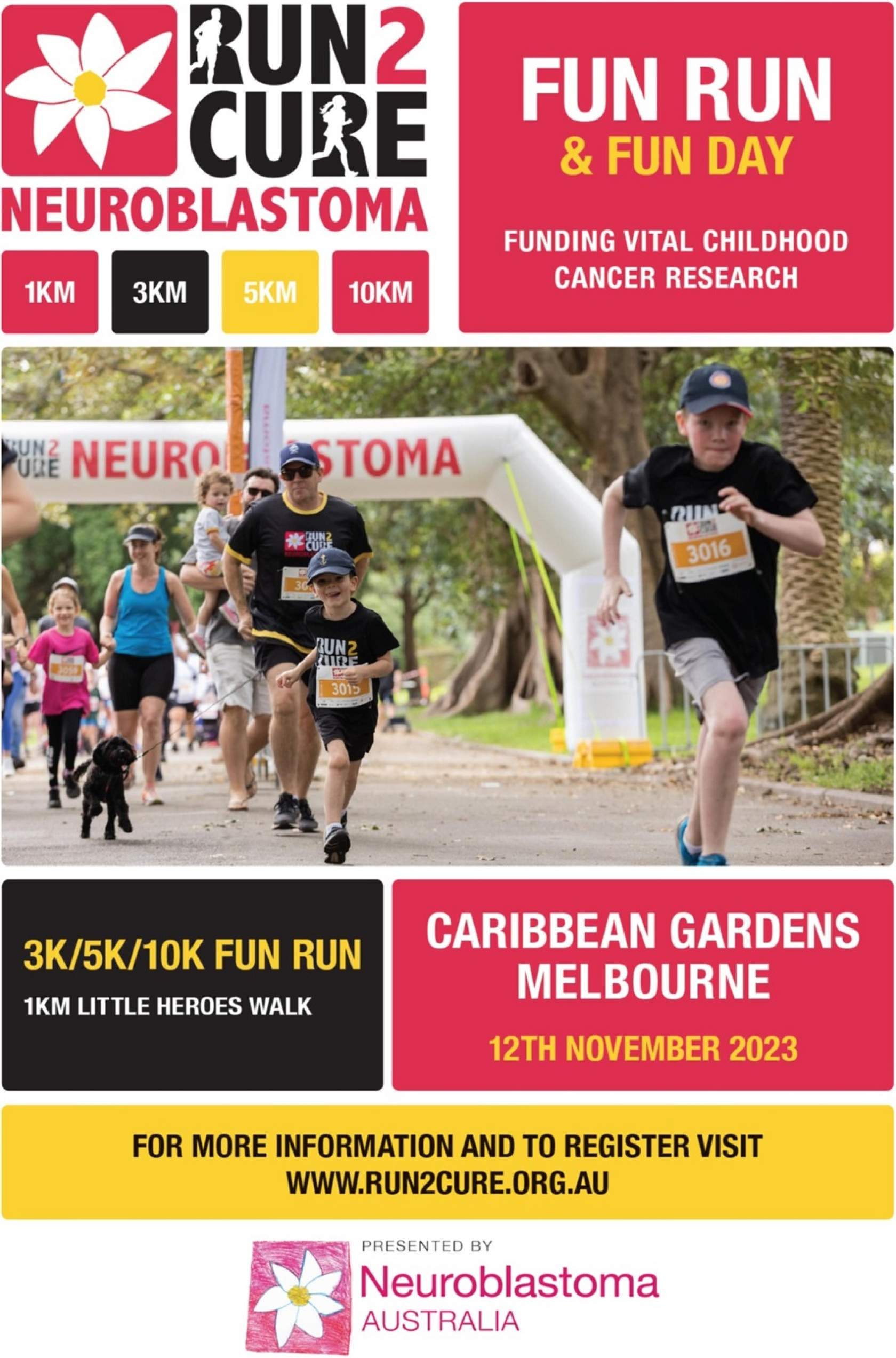 Run2Cure Melbourne offers a great range of fun run distances including a 10k ,5k, 3k and a family fun 1k Little Heroes walk.